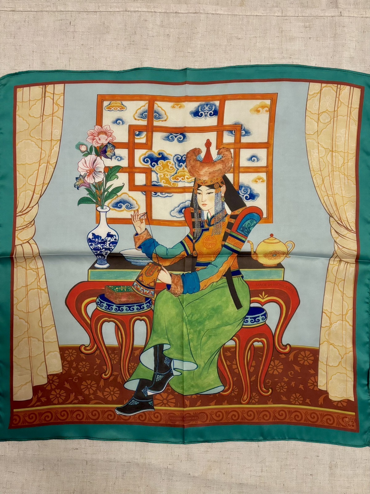 100% Silk, printed, square scarf, perfect for any occasion. Made by a local company in Mongolia.