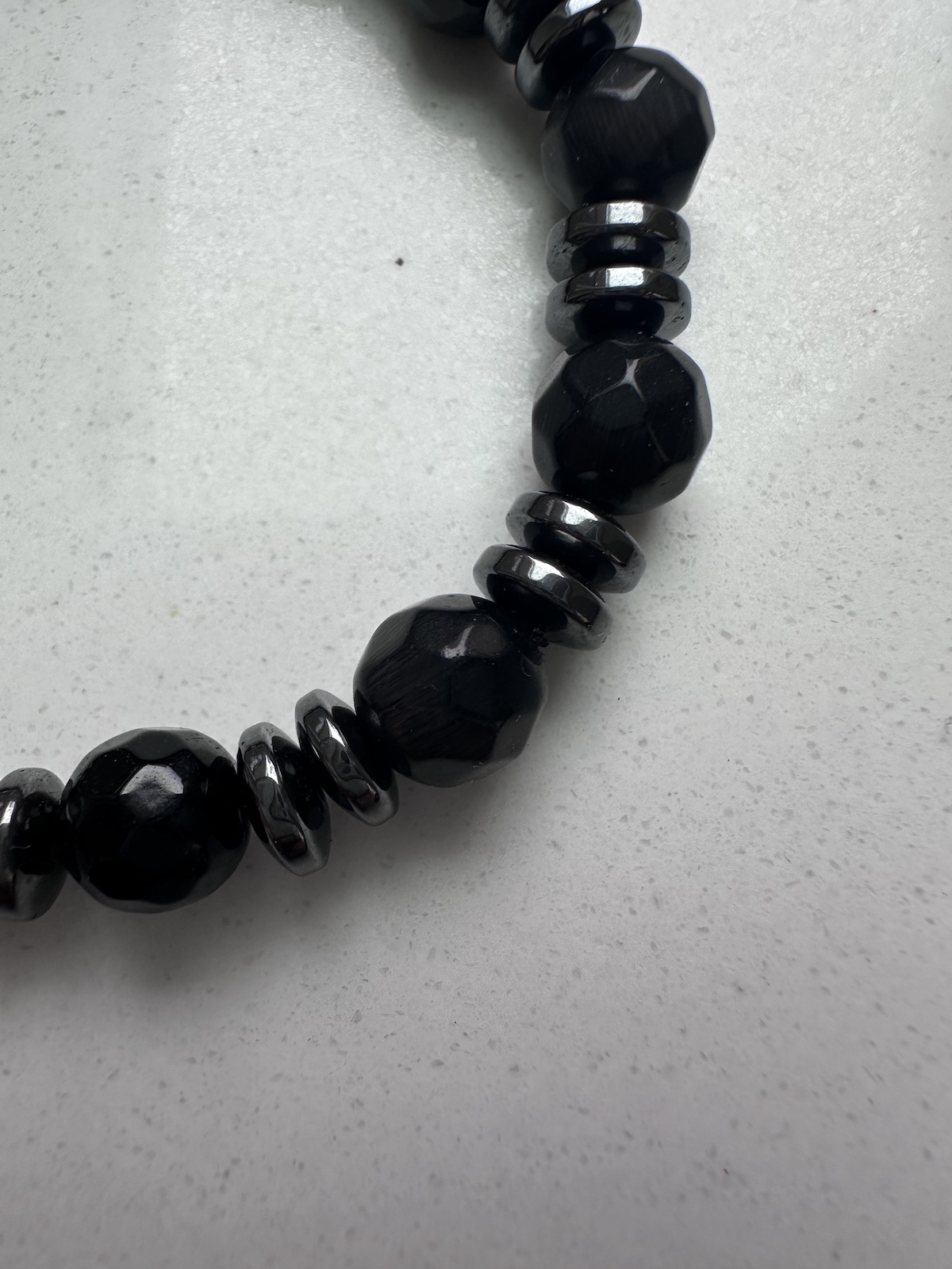 “Midnight” Black crystal with hematite.